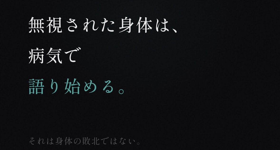 無視されると、声を大きくする。慢性的な痛み、繰り返す風邪、消えない疲労感、突然の動悸。それでも「薬で抑えればいい」「検査で異常がなければ大丈夫」と処理される。