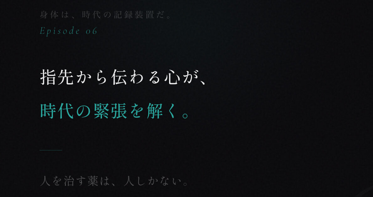 触れるという行為は、言葉を超えた対話だ。皮膚は身体最大の感覚器官——五感の中で最も原始的で、最も正直だ。言葉は嘘をつける。でも指先の温度は、嘘をつけない。